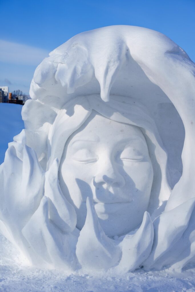 最後の11丁目は国際交流広場。それぞれの風土を反映した雪像がたくさん並んでおりました。これまでの日本(チーム)ともなんとなくテイストが違うのが面白いところ。下の写真は今回の国際雪像コンクールで優勝されたフィンランドの作品です。