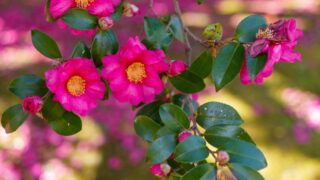 2026年01月第3週。奈良春日野国際フォーラムの山茶花が満開でした。山茶花と椿、違うんですね。