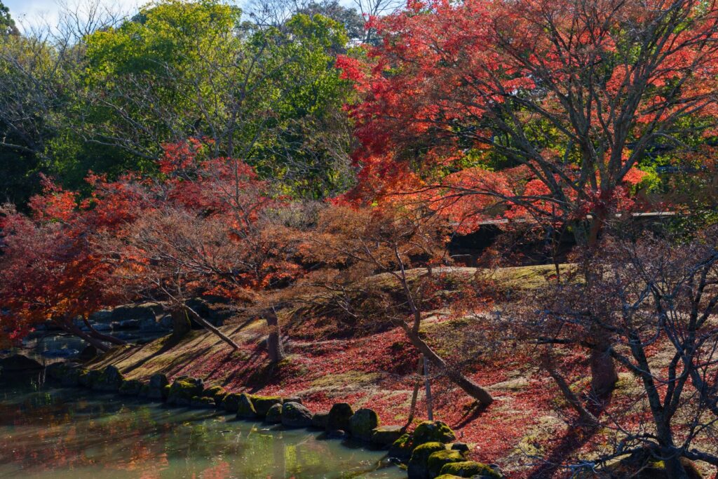 浮見堂の裏手のもみじたちは見ごろを過ぎ、地面を赤く染めておりました。