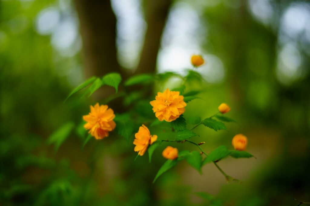 八重咲きの山吹。どちらもバラ科のお花ですね。