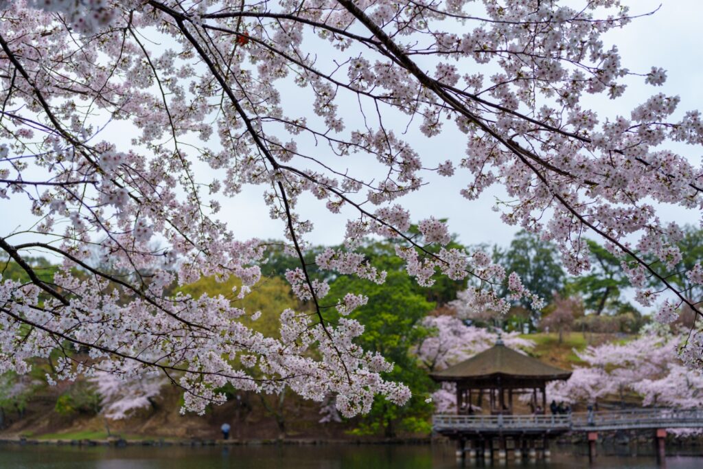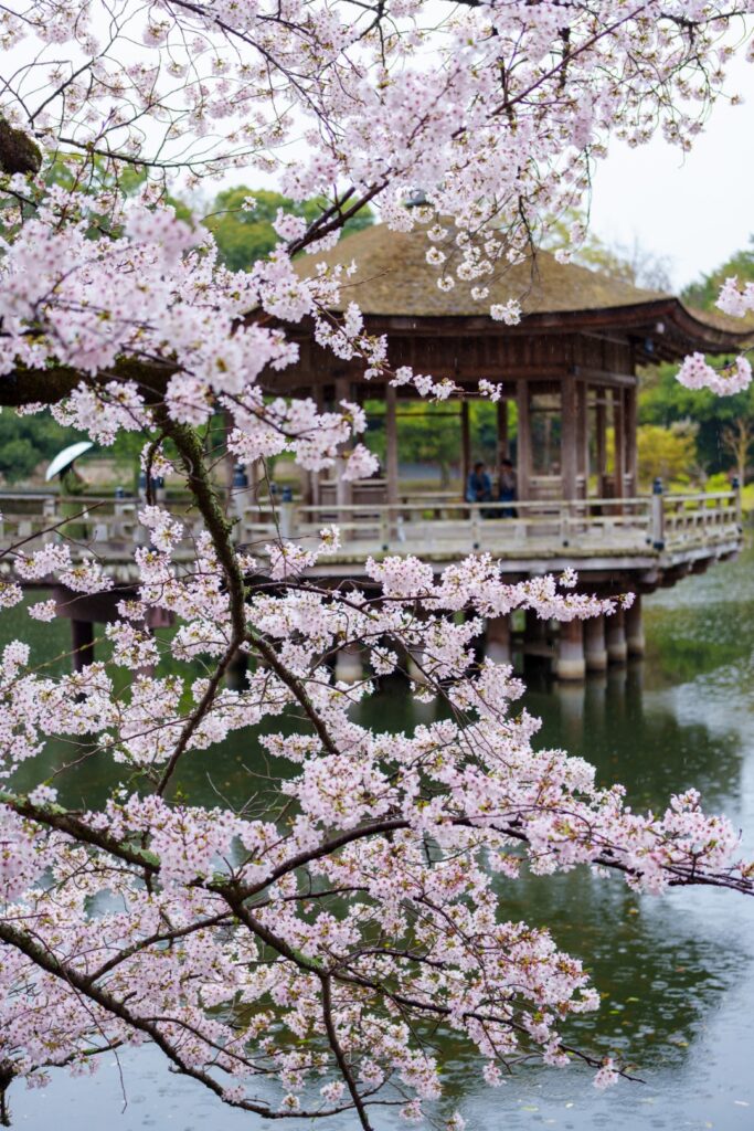 3日前はまだまだぽつぽつ咲きだった浮見堂あたりの桜も見頃を迎えていて、