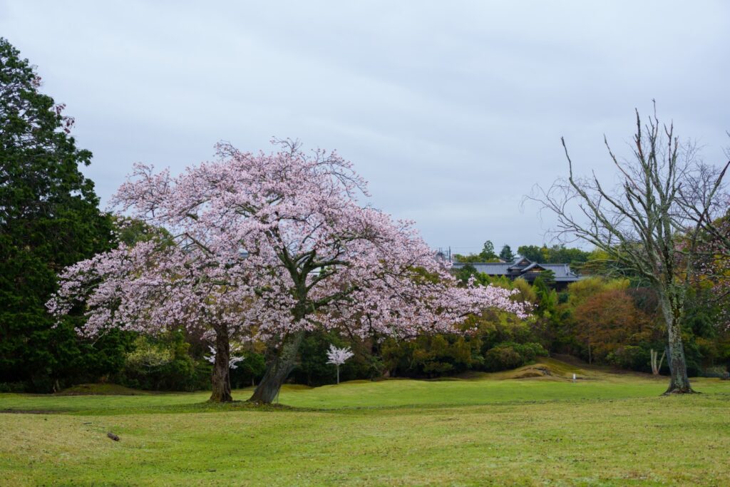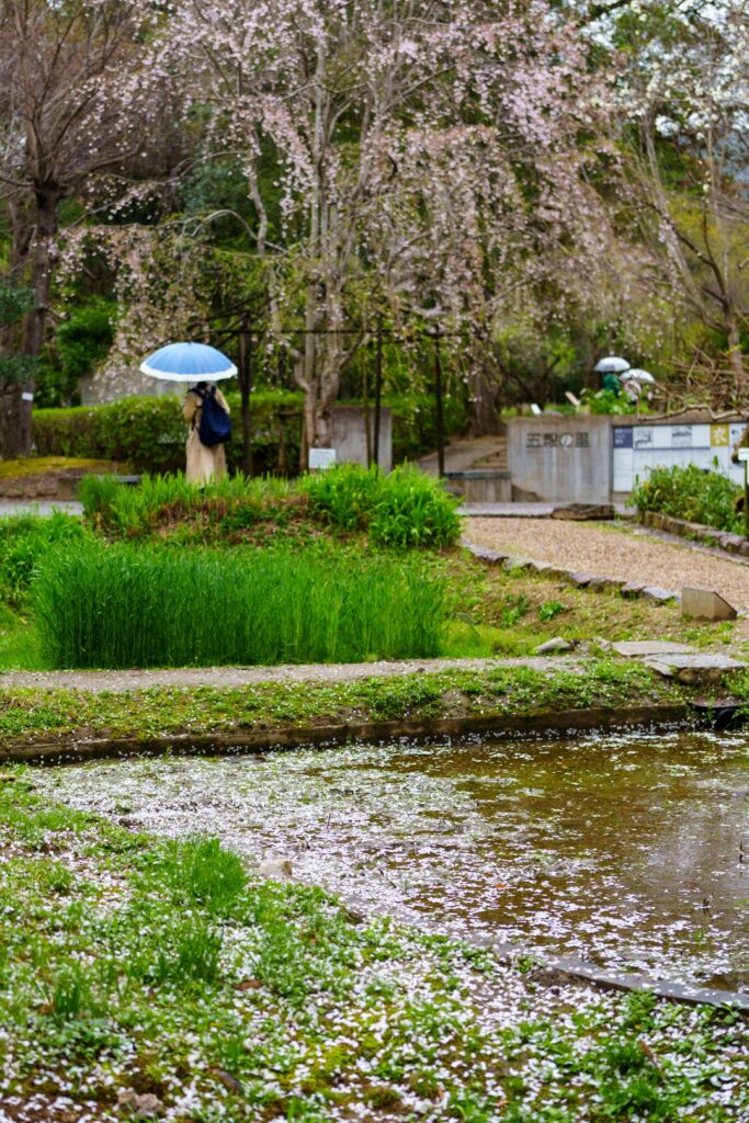 ということは、今日のお目当てだった萬葉植物園の枝垂れ桜もすでに散っており…。