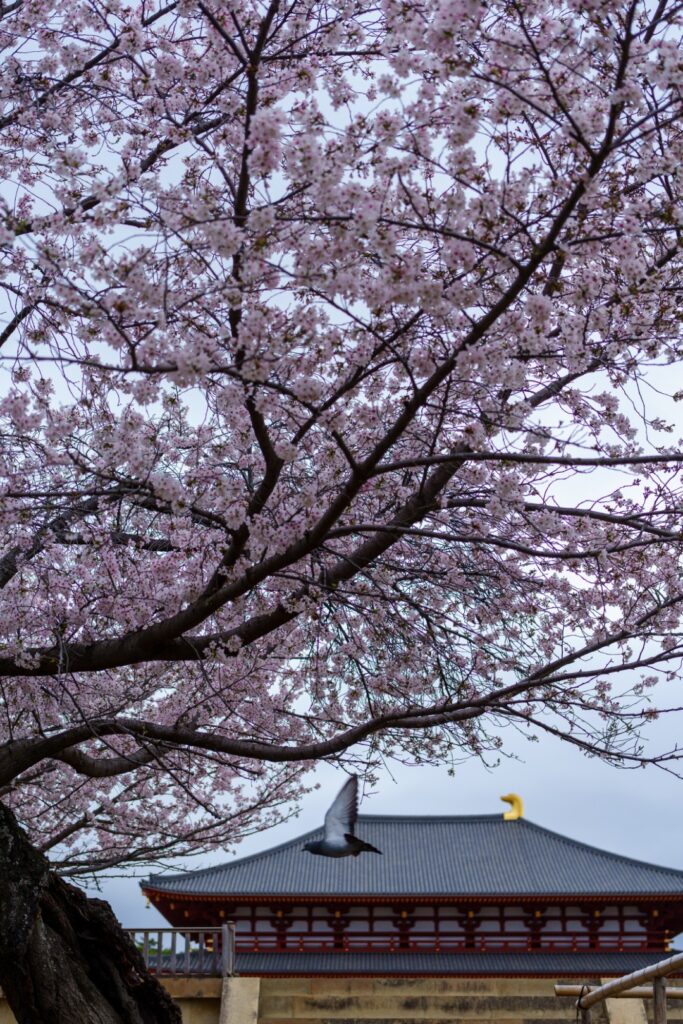 仏教美術研究センター前です。3日前は見頃だった枝垂れ桜が、今日はすでに散っていました。