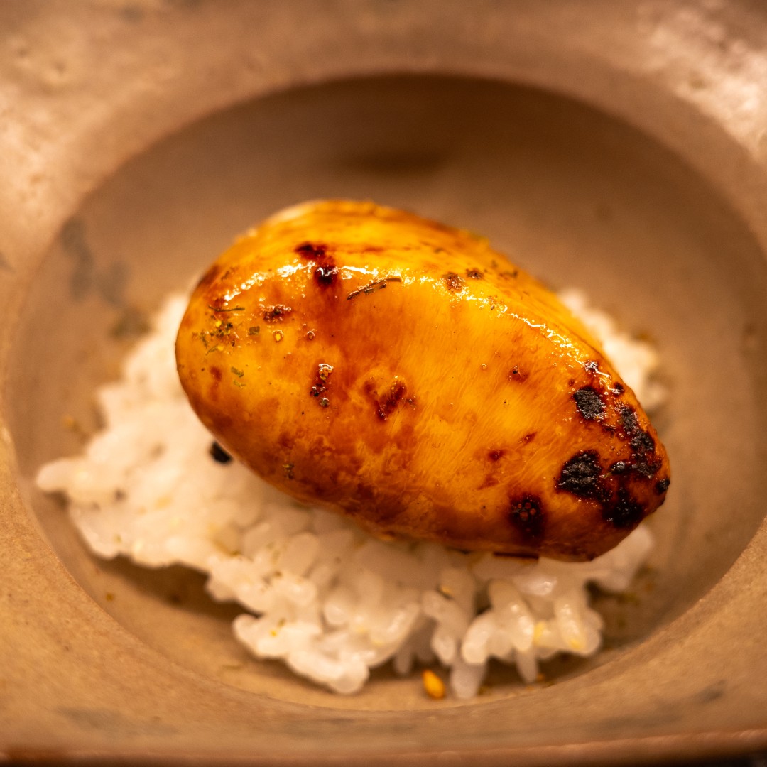 上の写真はトラフグの白子。奈良のお米ヒノヒカリの上にデーンと乗っています。崩してリゾットのようにしていただきました。うまい。