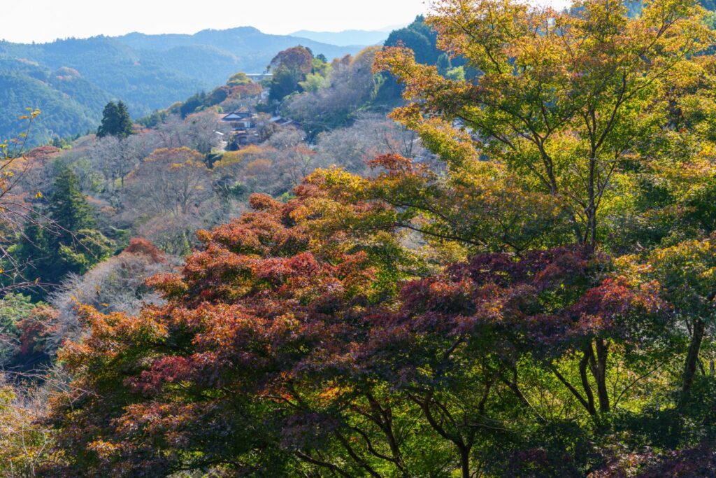 桜の時は人が多くて気が付きませんでしたが、こちらからは吉野朝宮跡が綺麗に見えるのですね。