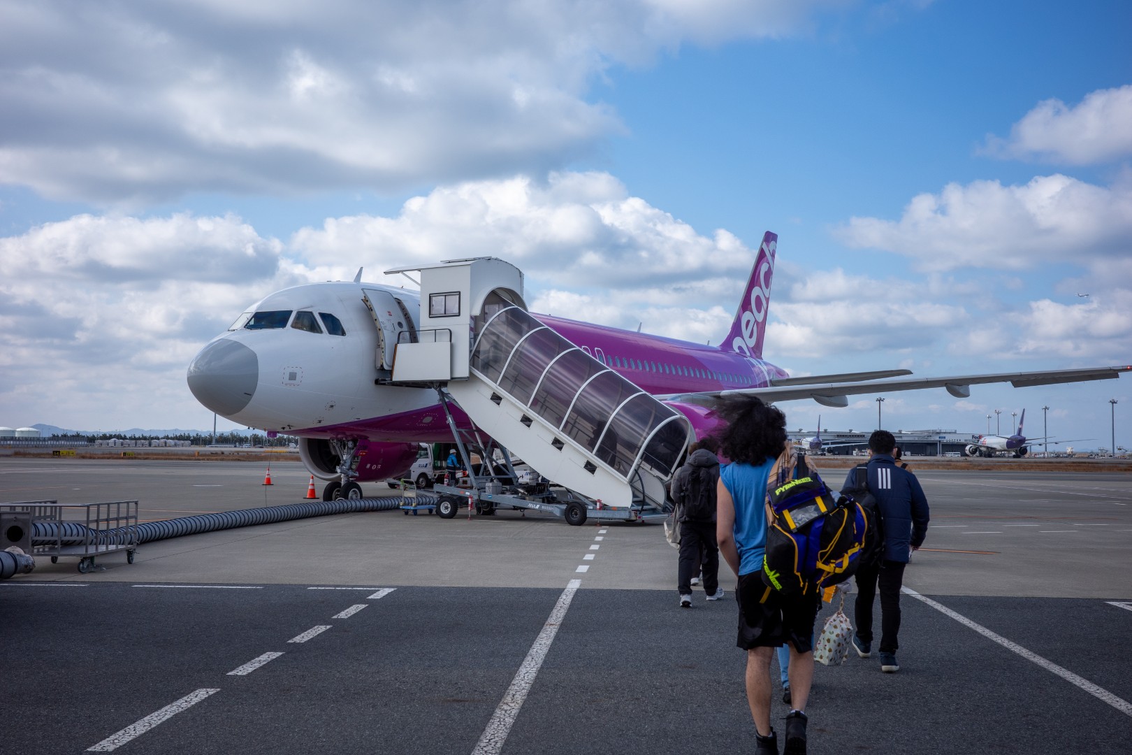 ボーディングブリッジもなく、なんと徒歩で飛行機に搭乗できます。到着地の予想気温はマイナス7℃。楽しみです。