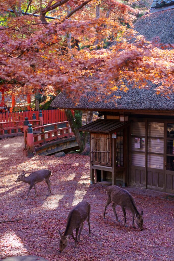 鹿さんは落ち葉を食んでおります。見ごろは過ぎておりましたが、たくさんの人が静かにこの景色を楽しんでおりました。