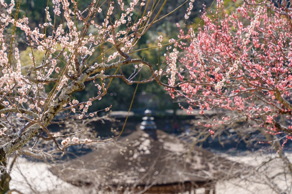 さらに歩みを進め、浮見堂を片岡梅林から眺めます。