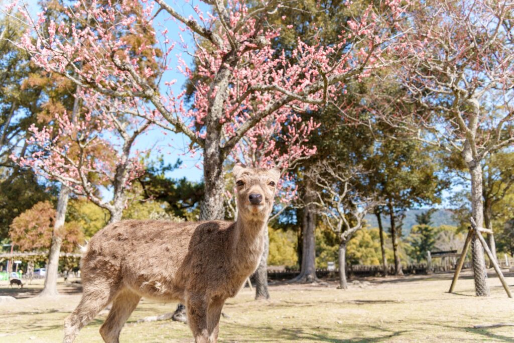 片岡梅林の梅はほぼ咲き揃ったようで、鹿さんもにっこり。