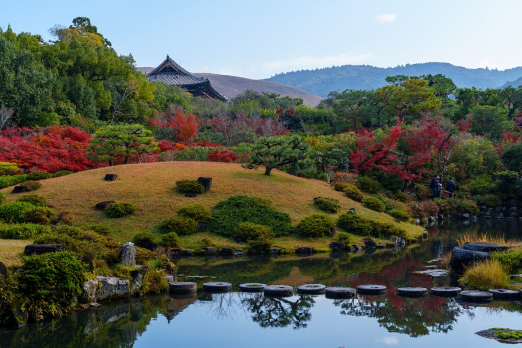 順路に従い歩くと後園へたどり着きます。東大寺南大門と若草山が奥に見えるのが依水園らしい景色です。