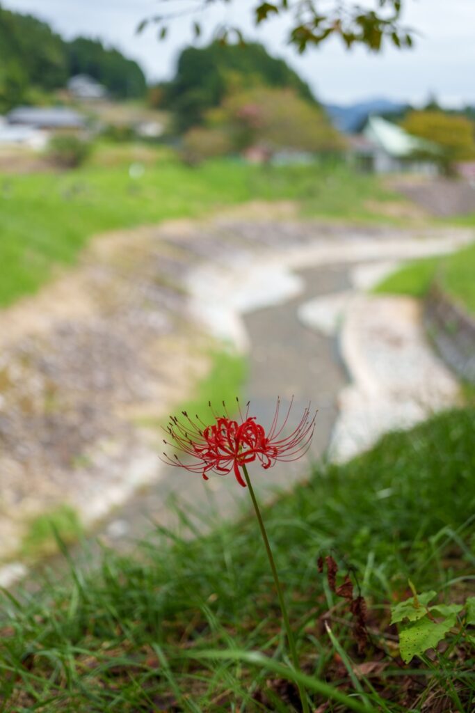 しかし、彼岸花の向こうに又兵衛桜。秋の雰囲気を味わえます。