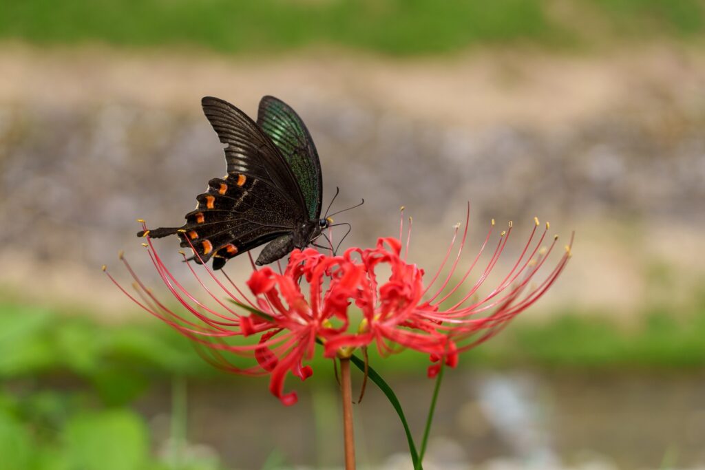 のんびりと蜜を吸っていたクロアゲハと目が合います。え、人いるじゃん。と言わんばかり。