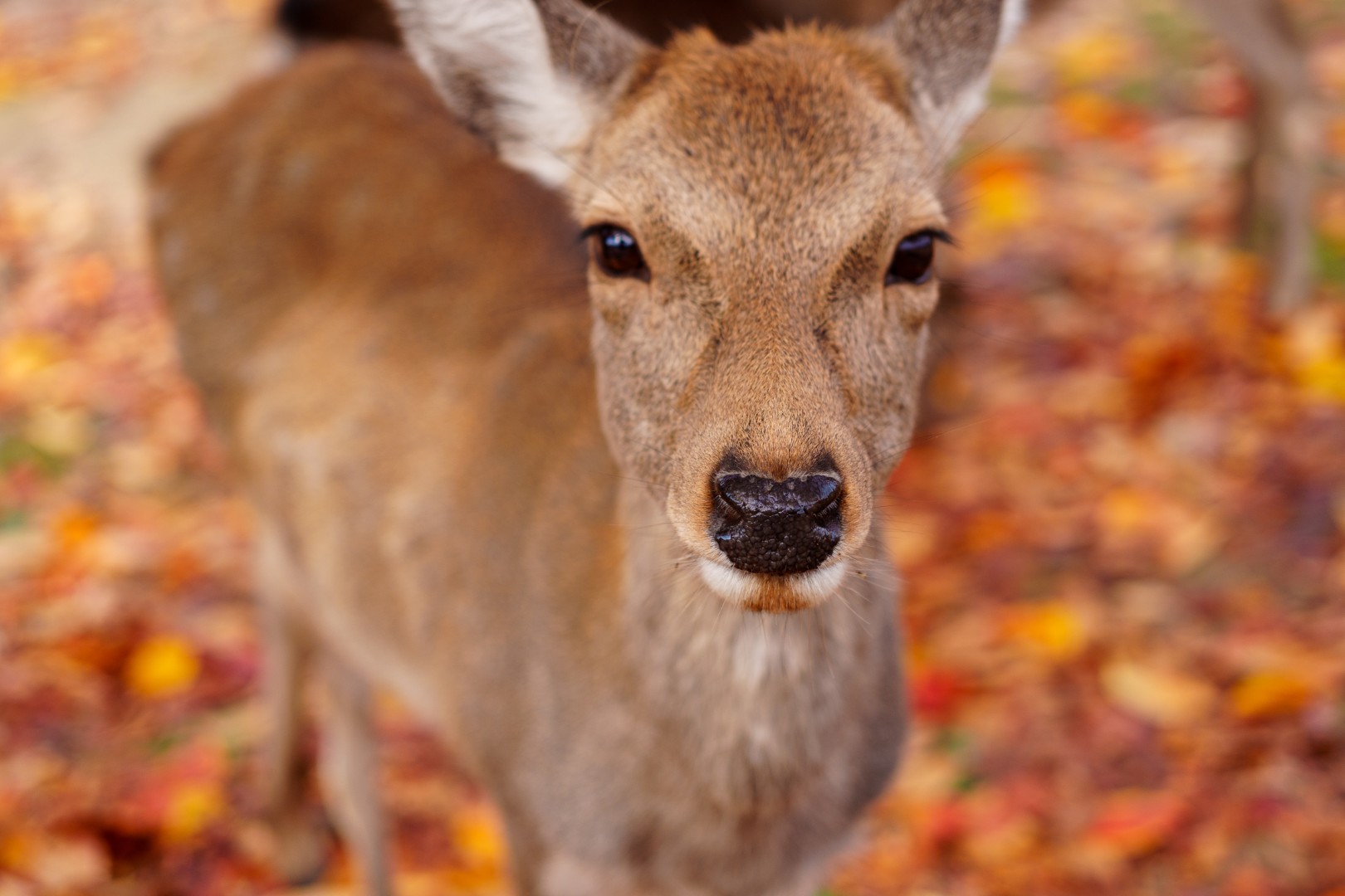 奈良公園の紅葉を楽しんでいると、鹿さんの良い表情にもたくさん出会います。せっかくですのでまとめておきましょう。