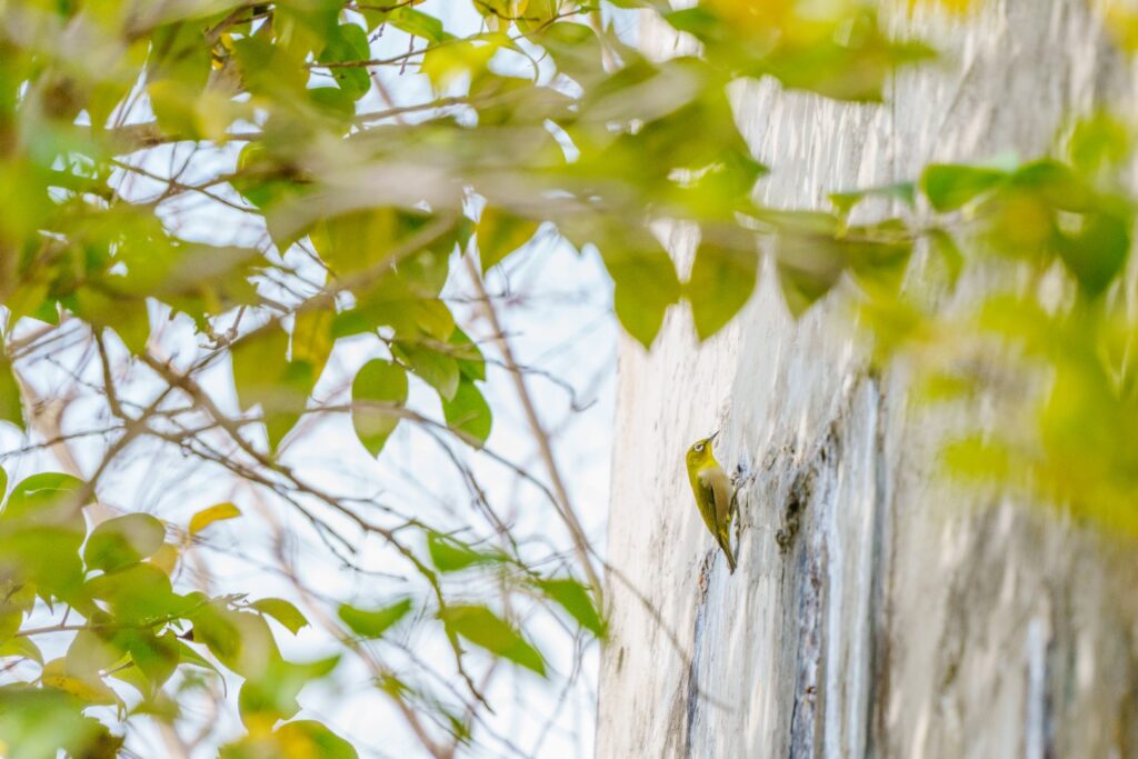 今日は梅とメジロのコラボも狙っていたのですが、梅には寄ってこず、なぜかコンクリの壁にとまったメジロが撮れました。沁み出たお水を飲んでいたのでしょうか。おなかが心配です。