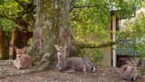 雨が降ってきましたよ。。。木の下で雨宿りしていると、鹿さんが寄ってきます。「鹿せんべい、もってない?」と。