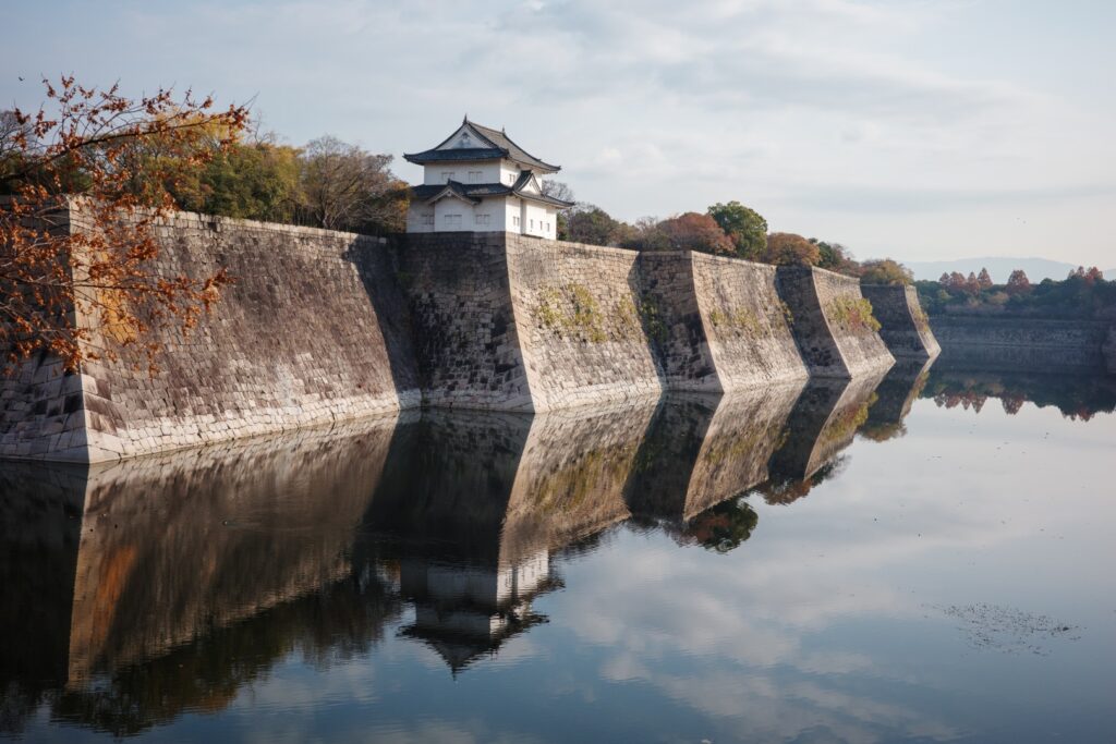 キーンと冷えた空気のおかげでしょうか。お堀に綺麗に立派な石垣の景色が映り込みます。