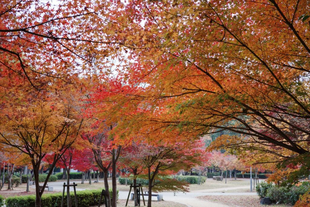 森之宮駅に向かおうと歩いていると、記念樹の森辺りはまだ多くのもみじが残っておりました。