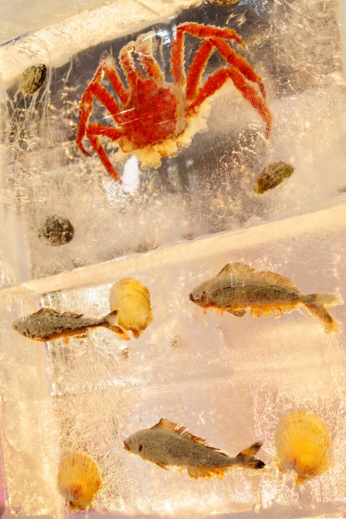 こちらは”すしざんまい”さんの展示。氷像というよりは冷凍保存ですね。良い。