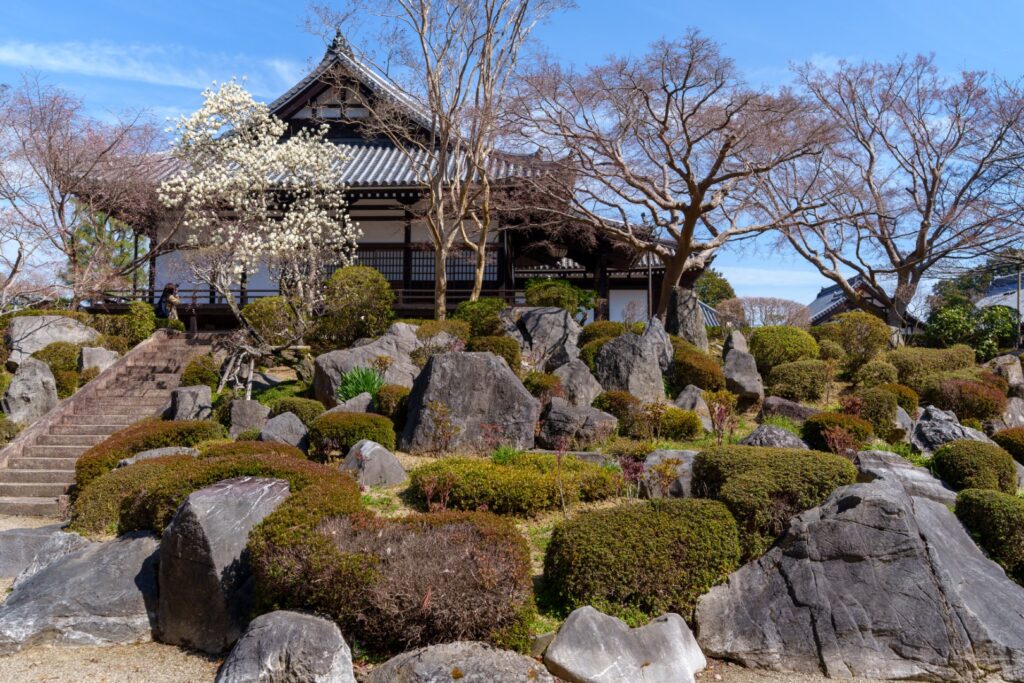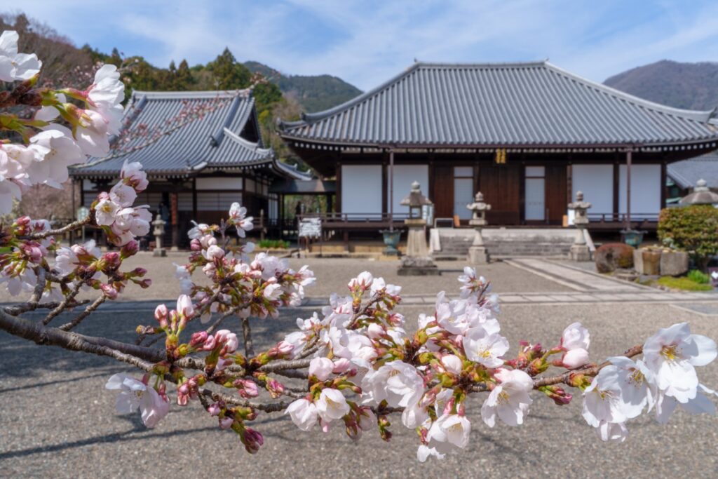 静けさの中、歴史を感じるお寺と枝垂れ桜の共演が心に沁みました。
