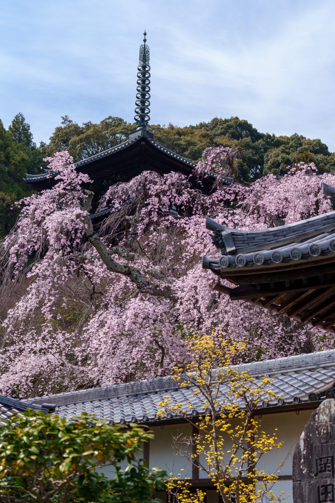 奥院を出て、護念院へ。こちらにも立派な枝垂れ桜が満開で迎えてくれました。西塔との共演が良い趣です。