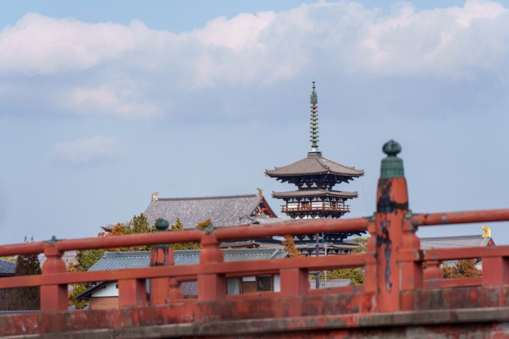 薬師寺への入り口はすぐそこなのですが、今日は遠くから眺めると決めておりますので、ぐいっと曲がって目的地へ。改めてじっくり参ります。