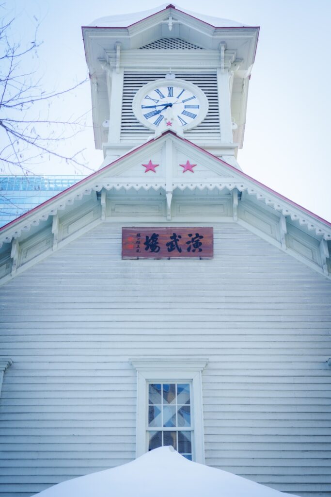 札幌時計台、もともとは札幌農学校の演舞場として1878年に建てられたとのこと(その後何度か改修)。雪の積もるアメリカ風の木造建築は写真を撮るのが好きな人にとって格好の被写体です。