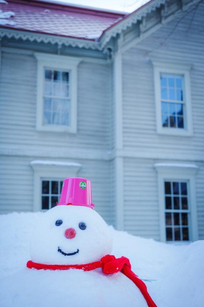 「おはようございます!」とにっこり笑う雪だるまたちが出迎えてくれます。