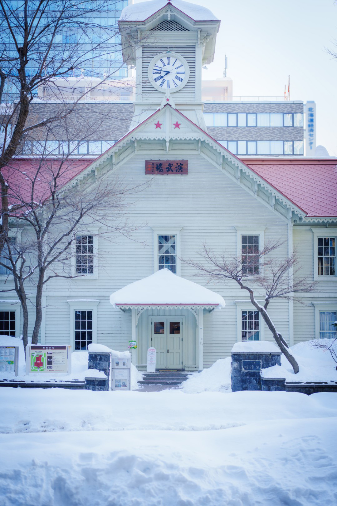 札幌時計台、もともとは札幌農学校の演舞場として1878年に建てられたとのこと(その後何度か改修)。雪の積もるアメリカ風の木造建築は写真を撮るのが好きな人にとって格好の被写体です。