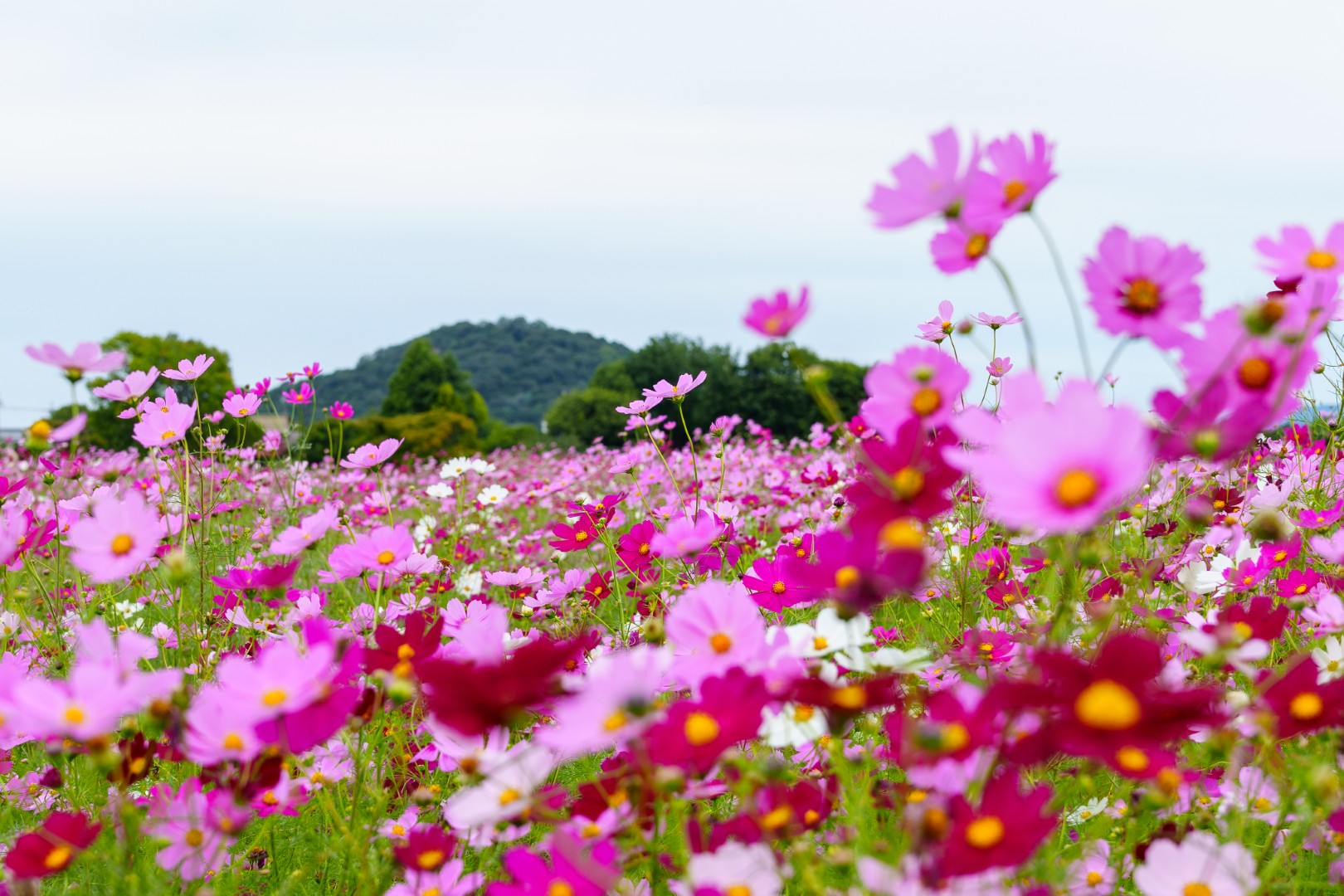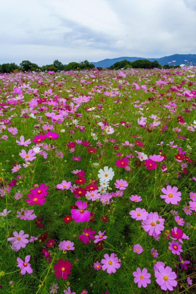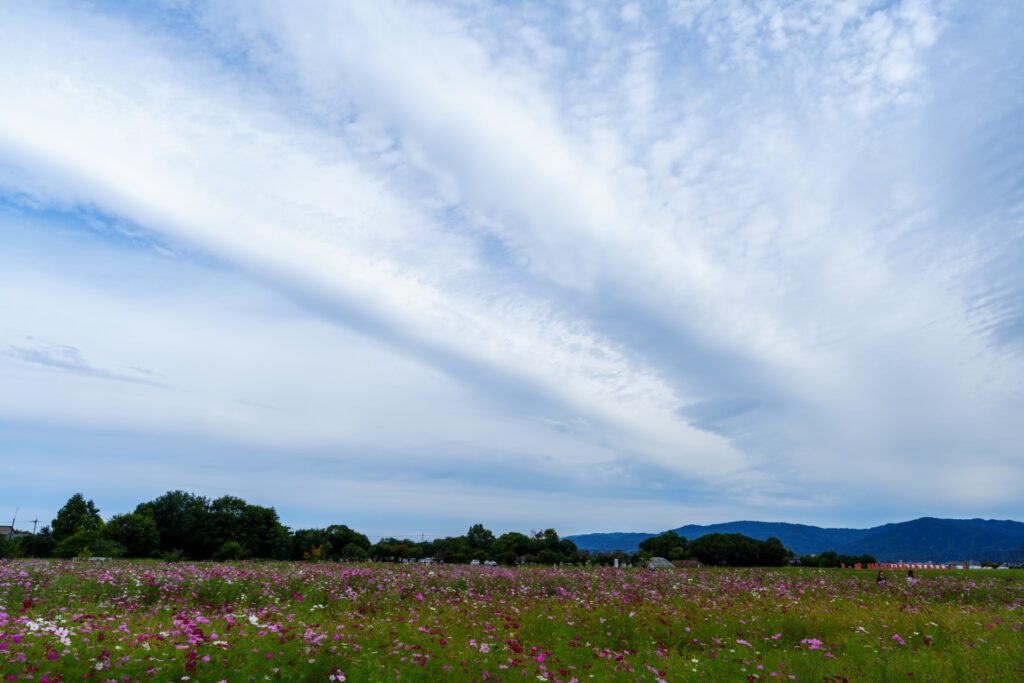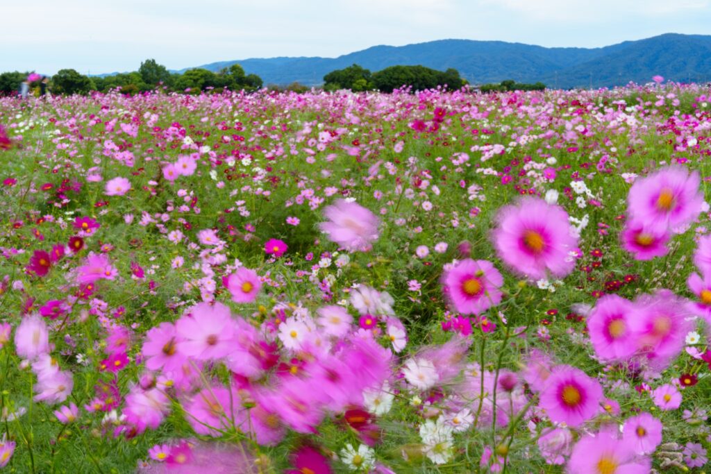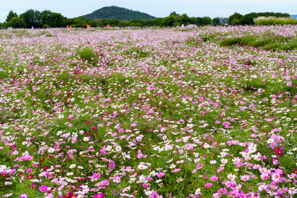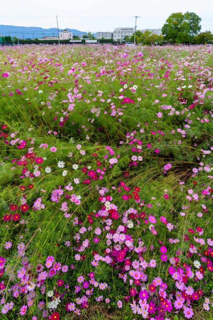 駐車場から歩いてすぐのところに、広いコスモス畑が広がっておりました。なんと240万本だそうです(橿原市HPより)。すごい数でした。