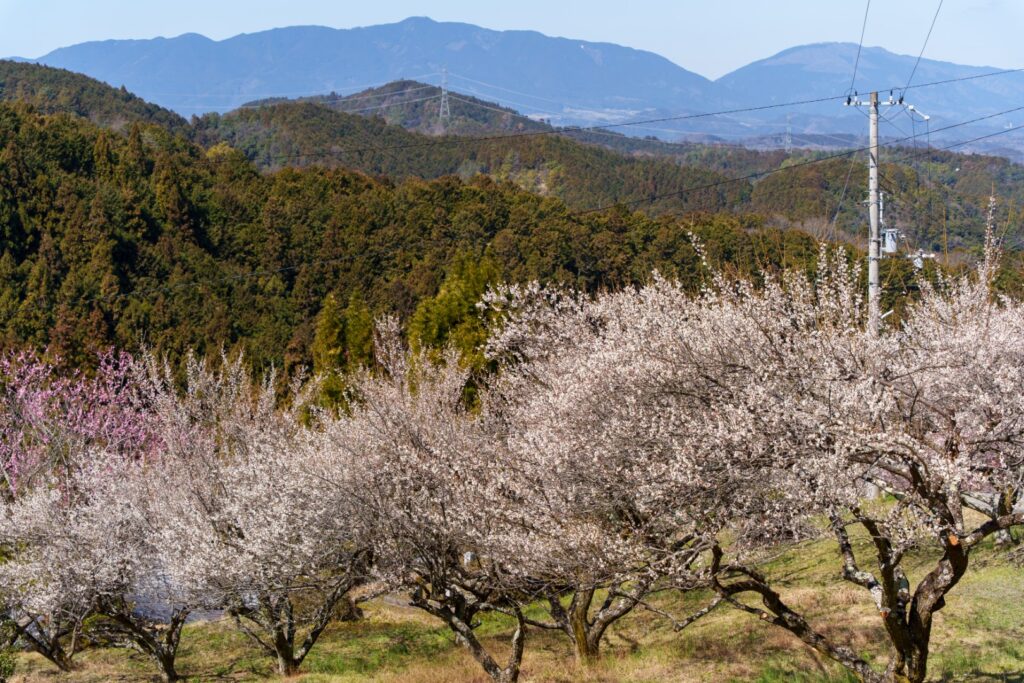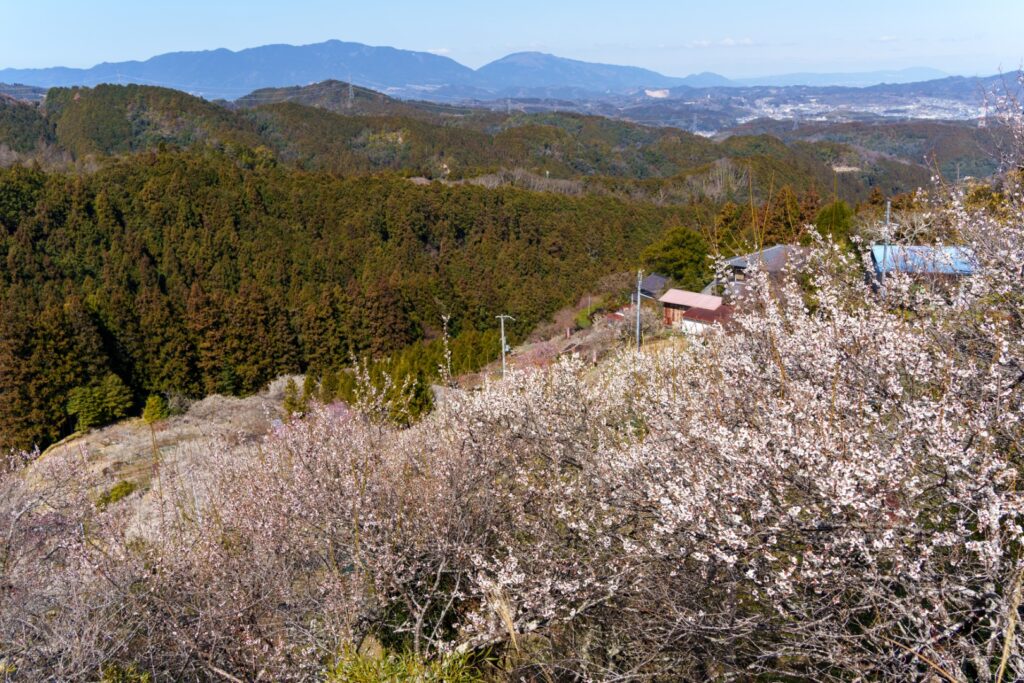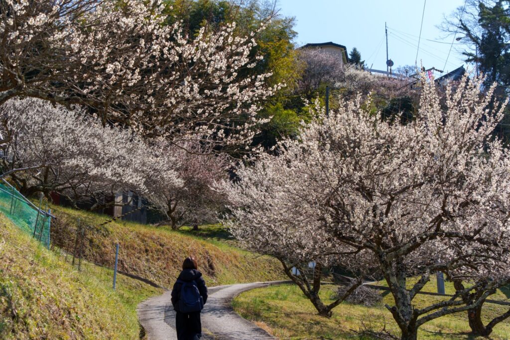 しっかり歩き回り、広橋梅林を楽しみました。三大梅林の中では梅の木の数が一番少ないようですが、「自由に歩き回ってください」という雰囲気で、自由度は一番高い梅林でした。自由が好きな私にはぴったり。静けさの中、満開の梅と広がる景色を満喫できました。