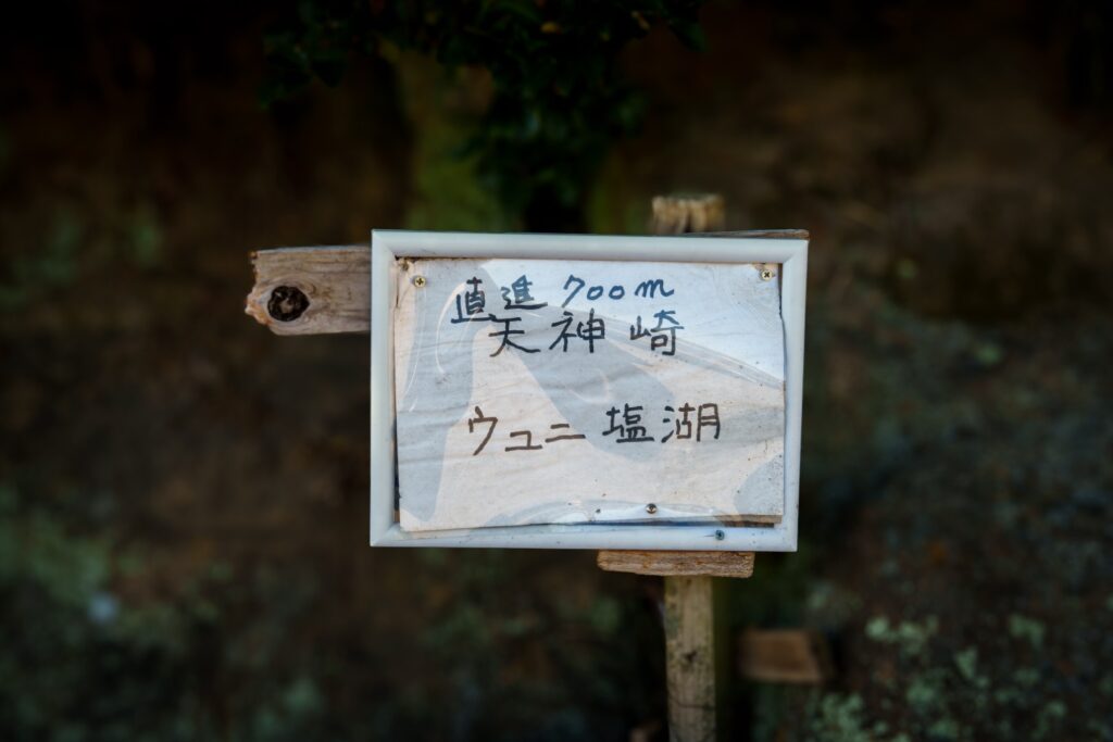 味わい深い手書きの看板です。過去にリゾート開発計画があったようですが、地元の方々に守られ残った自然風景とのこと(和歌山県観光協会HP参照)。