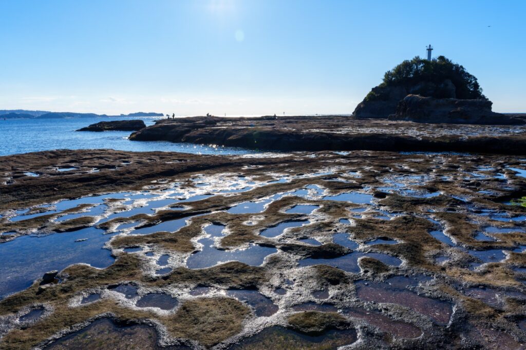 さて、こちらは天神崎。和歌山県田辺市にございます。引き潮が岩礁に残ることで、このような面白い景色を見ることができます。