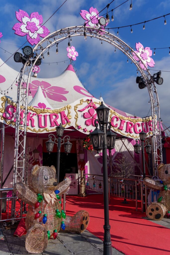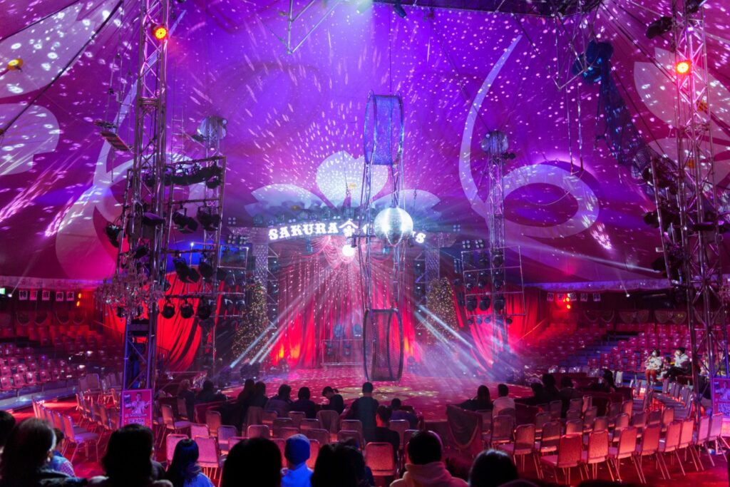先日、おぎの美術館を見に行った時、普段は空き地もしくは駐車場だったような気がする広大な土地に、見慣れない白とピンクの大きなテントが。なんだろうと調べてみると、さくらサーカスが奈良で11月15日から来年の3月8日まで公演を行っているとのこと。