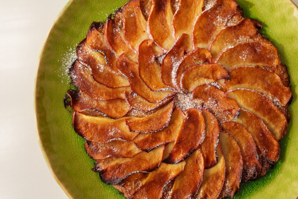 オーブンで焼くこと25分。粉砂糖をふりかけ、林檎のガレットが出来上がったようです。