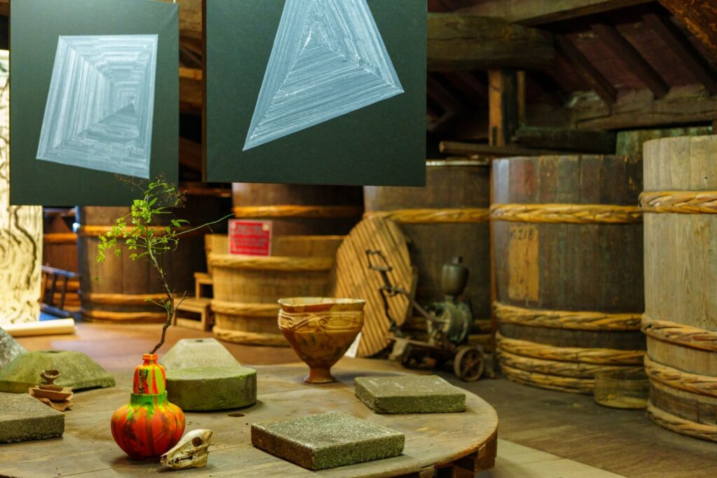 まずはクンチョウ酒造の酒蔵へ。この日は現代アートとのコラボが行われておりました。