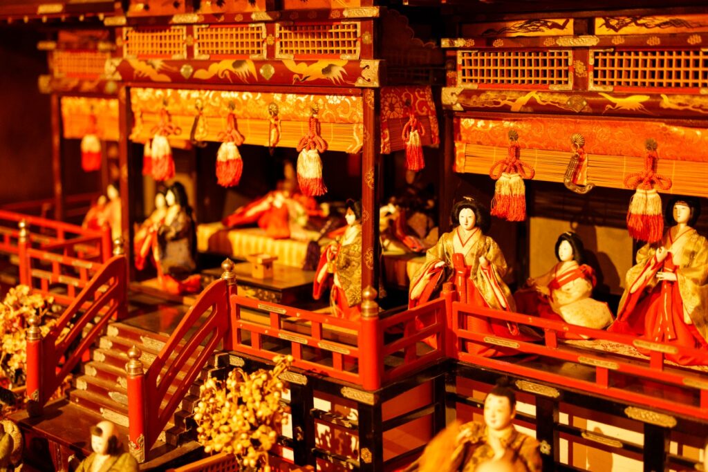 次に訪れたのは日田醤油”ひな人形ミュージアム”。江戸時代に栄えた日田では豪華なひな人形を収集展示していた旧家が多かったそうです(看板参照)。そういった背景もあって、たくさんのひな人形が集められておりました。こちらは御殿雛飾り。初めて見ました。300円でかなり楽しめました。