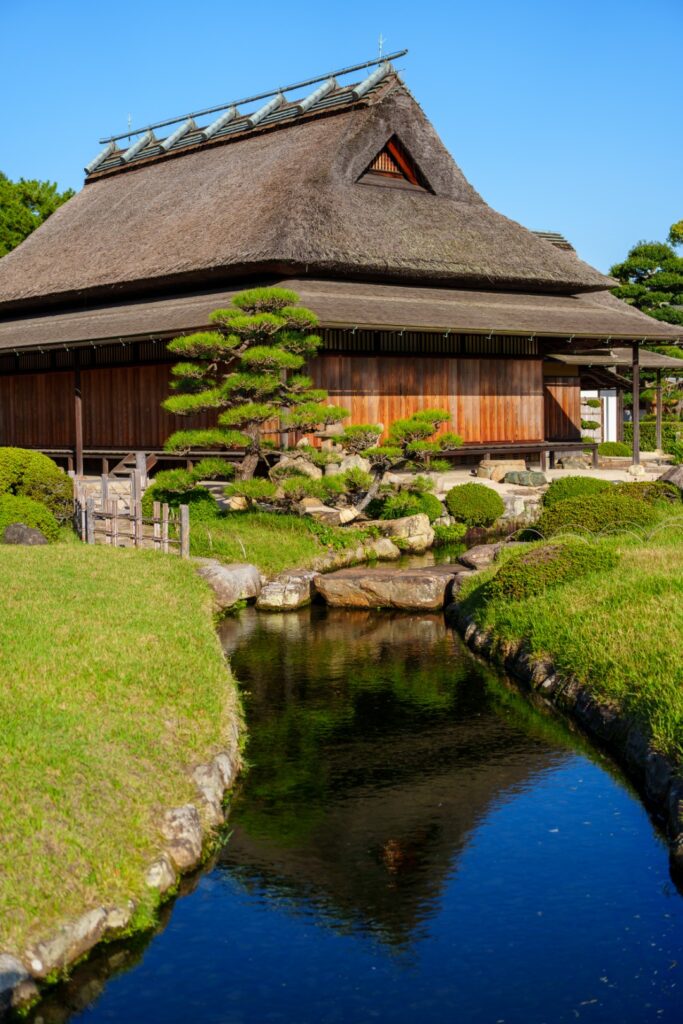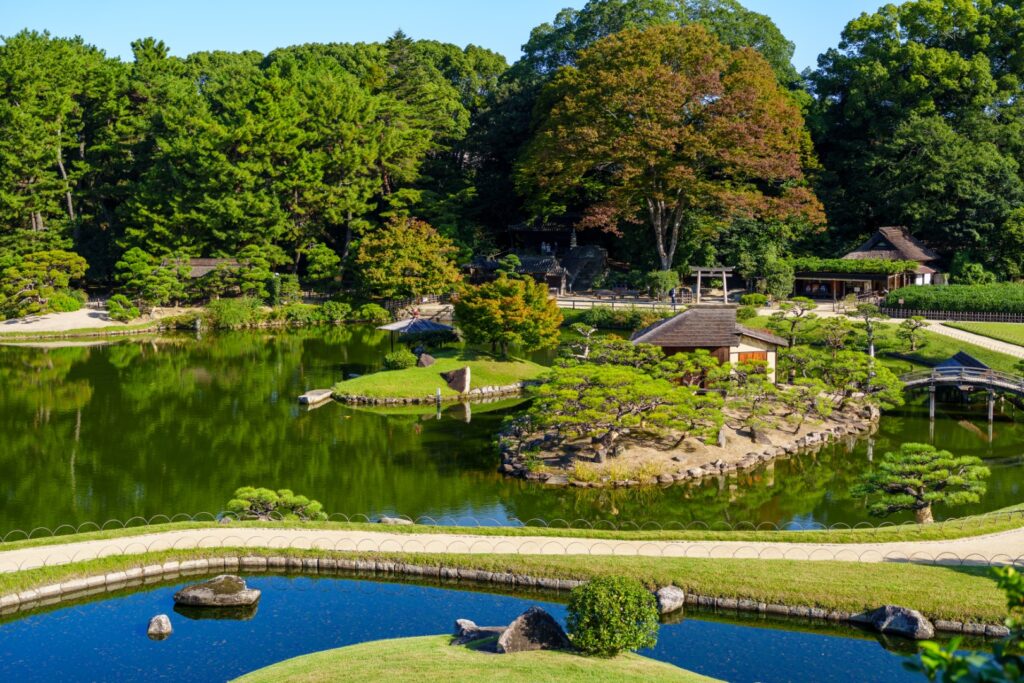 後楽園は江戸時代の大名庭園。池田綱政が家臣の津田永忠に命じて1687年に着工。1700年に一応完成(後楽園HP参照)とのこと。水が綺麗なのが印象的なお庭です。