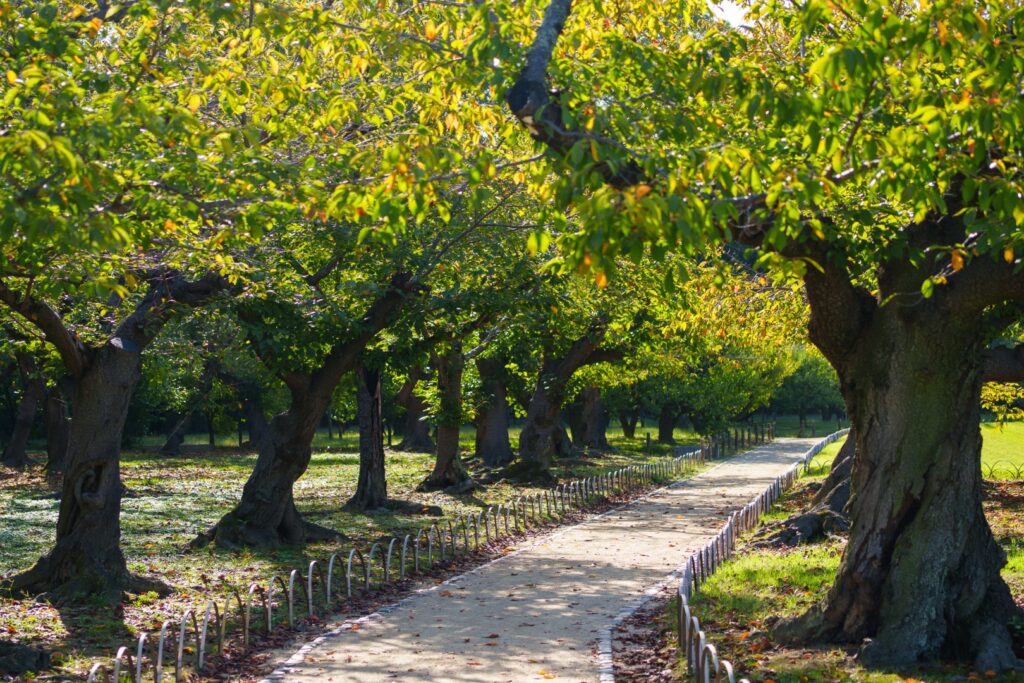 園内の東側には桜並木が朝日を浴びておりました。花が咲く時期はすごそうですね。。。