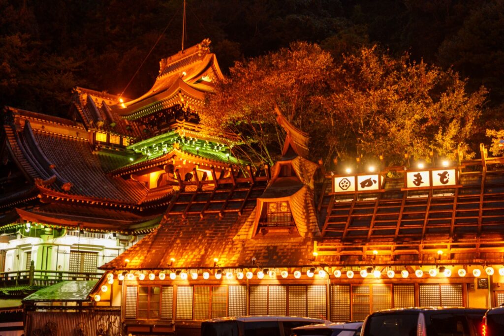 錦帯橋から街灯の無い暗い2号線をぐいぐい進むと、突然煌々と点る灯りが現れます。
