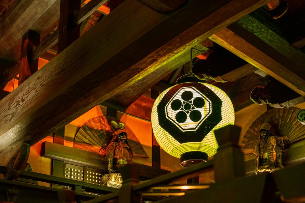 予約した人は奥にある”桃李庵”へ案内されます。初めて来ました。梁が立派な屋敷ですね。至る所に鎧兜とでっかいちょうちんが飾られておりました。