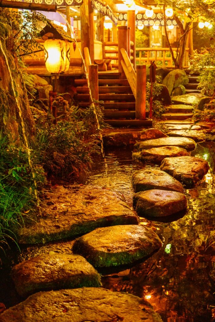川と飛び石など、お庭も豪華で、非日常的な雰囲気を楽しむことができます。