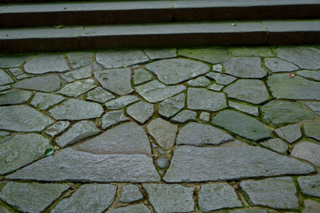 まずは上宮本殿を目指します。石段を上って行くと夫婦石がございました。一人の場合は両足で、二人の場合は左右それぞれ踏むと良いとのこと(宇佐神宮HP参照)。