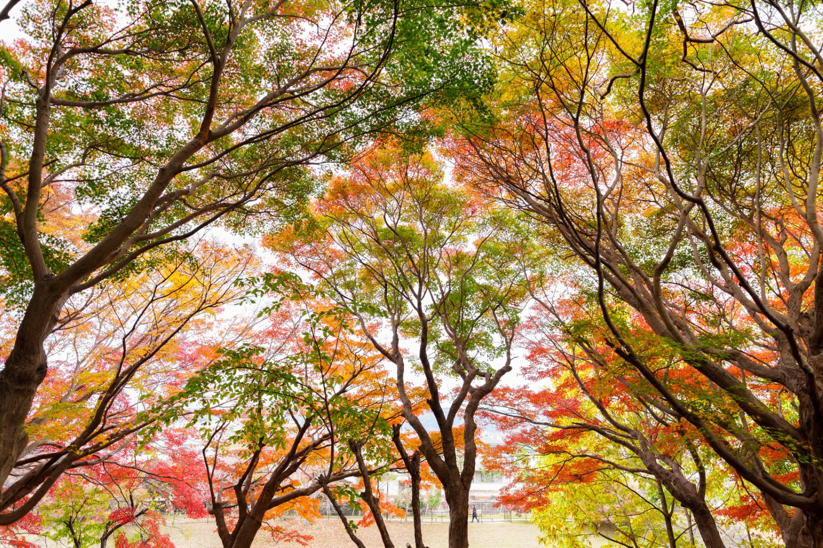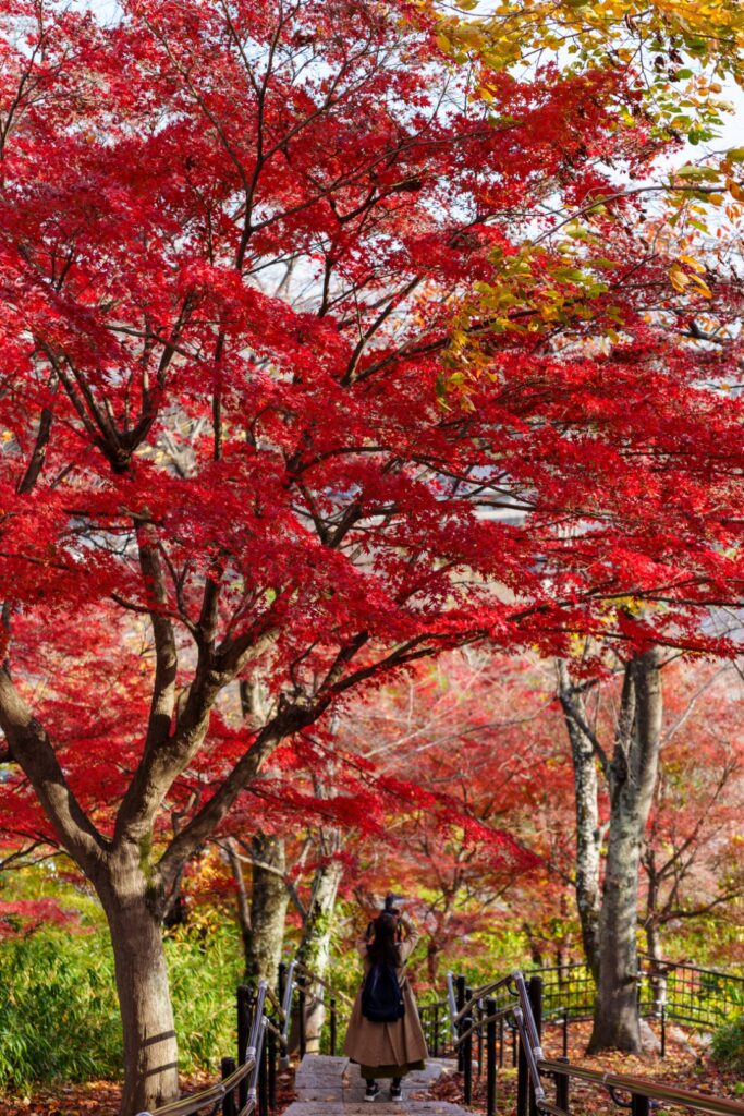 上りきると、紅葉越しに街並みが見下ろせます。気持ちの良い景色ですねー。