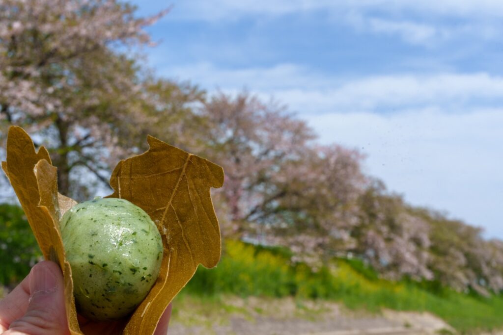 葉桜を眺めながら、葉っぱにくるまれた桜餅でも食べようかと、ここに来る前に萬春堂さんに寄りましたが、桜餅はもう終わりで、柏餅に変わっていました。