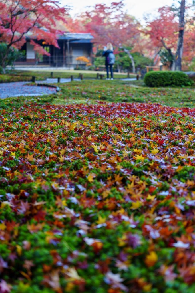 別のもみじは紅葉が進んでおり、その下には落ち葉がたくさん。緑色の苔の庭に赤と黄色の色彩が散りばめられておりました。うーん、良いですね。