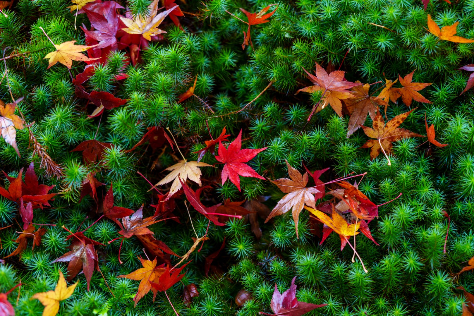 別のもみじは紅葉が進んでおり、その下には落ち葉がたくさん。緑色の苔の庭に赤と黄色の色彩が散りばめられておりました。うーん、良いですね。